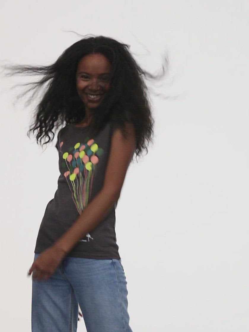 Hoch hinaus mit Stil! 🎈 Das Balloons Girl Shirt in Dark Grey bringt Leichtigkeit und Freiheit in deinen Look!